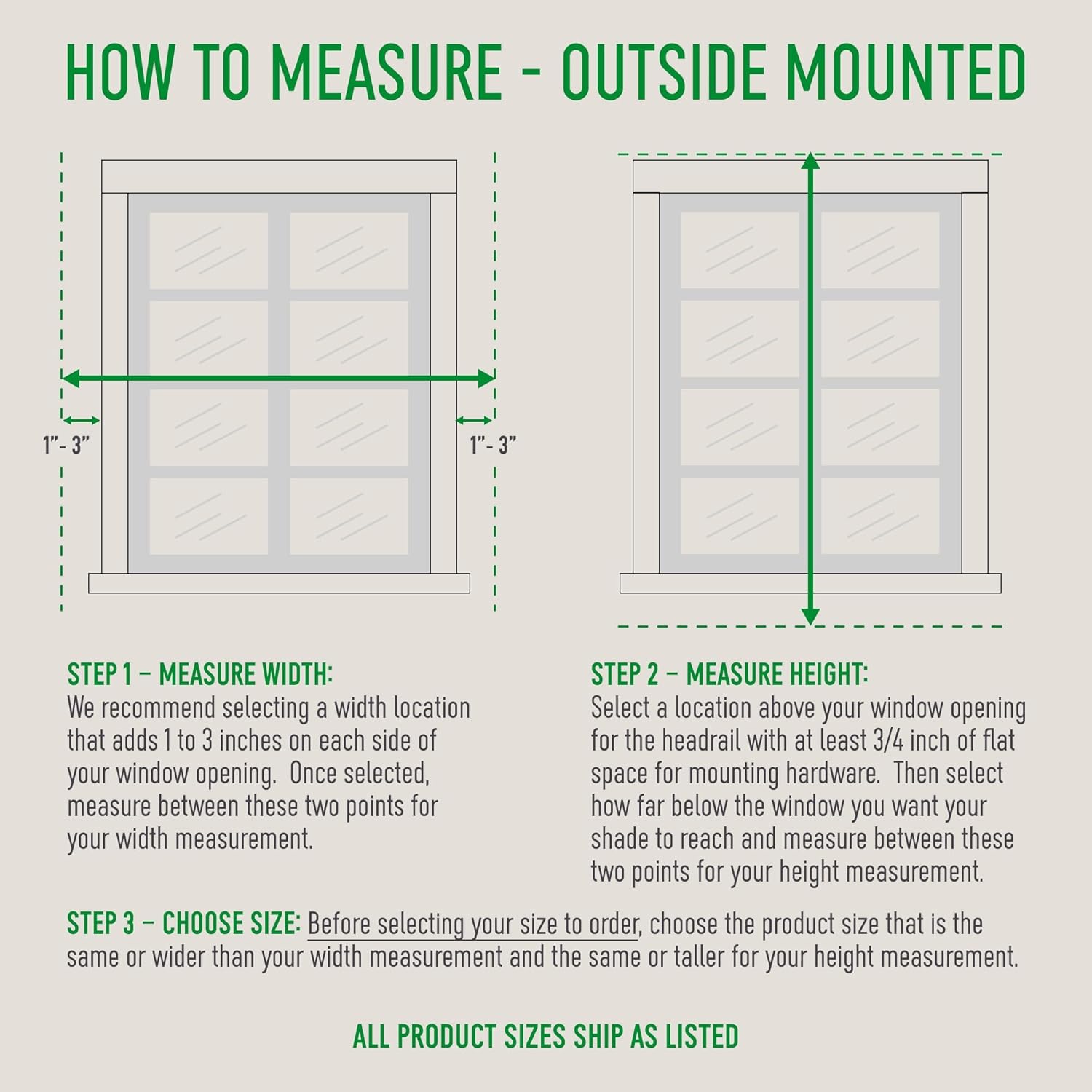 EASY INSTALLATION & HARDWARE INCLUDED: All of the hardware you need to mount your shade inside or outside of a window frame is included, along with easy-to-follow instructions. Please view the measuring instruction image for further details.